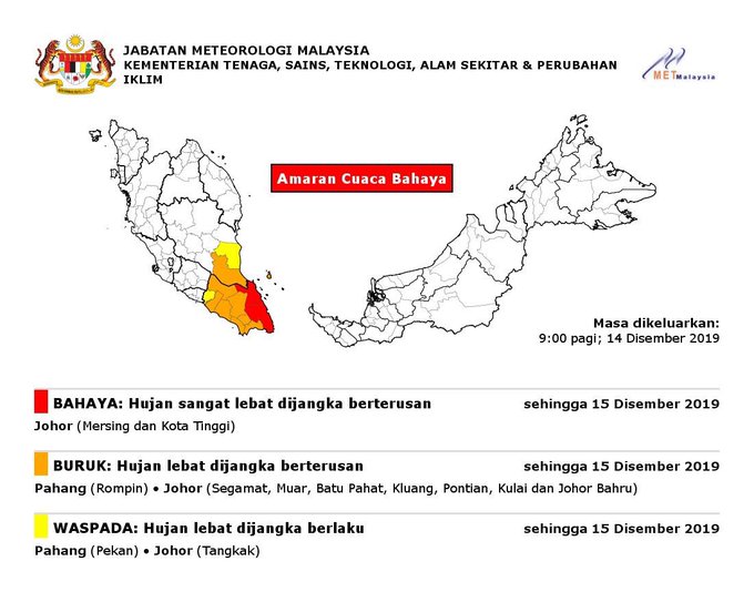 Bernama Amaran Cuaca Buruk Di Pahang Johor Sehingga Esok Jabatan Meteorologi Malaysia Metmalaysia Hari Ini Mengeluarkan Notis Amaran Cuaca Buruk Dan Waspada Dengan Hujan Lebat Di Beberapa Kawasan Di Pahang Dan